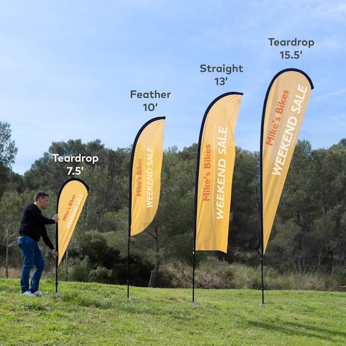 Feather Flags are the perfect solution for drawing attention to your business, product, or promotion. The flag is made from a polyester material, which is weather-resistant and extremely durable, making it perfect for using outdoors. The pole set is made from a combination of lightweight aluminum and fibreglass for durability. We also offer additional base options that will allow for the flag to be displayed on optional surfaces indoors as well as outdoors.